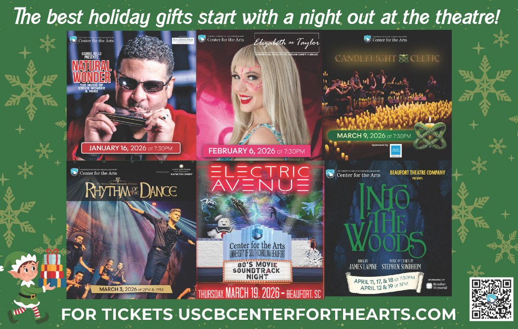 Experience the magic of the season — live onstage with tickets to a fabulous Christmas show at the University of South Carolina Beaufort Center for the Arts. “We have two great shows filled with the holiday spirit — Real Love: Kenny Rogers and Dolly Parton tribute featuring Christmas hits and The Doo Wop Project Christmas Show,” shared Bonnie Hargrove, director of USCB Center for the Arts.”