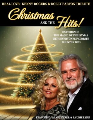 Real Love: Kenny Rogers and Dolly Parton is a festive tribute featuring Christmas hits! This performance is for one night only, December 13 at 7:30 p.m., starring award-winning country artists Alan Turner and Laurie Lynn. This festive show celebrates the heart-warming holiday songs and unforgettable classics of two country music legends.